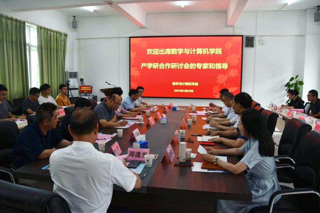 为密切学院与高校、行业企业的交流与合作,促进学院人才培养、科学研究、社会服务等产学研一体化发展,4月20日上午,在明德楼A405会议室,数学与计算机学院举办了产学研研讨会。北京交通大学软件学院院长、中国软件联盟理事长卢苇教授,清华大学软件学院赵曦滨教授,中车信息技术有限公司董事长陈凯,广州恒电科技有限公司董事长高静、技术总监黄志川和湖南强智科技有限公司总经理何勇波等嘉宾应邀参会。副校长邓逢光出席会议并致辞。数学与计算机学院领导班子、各单位主任、教授委员会成员、教师代表、研究生代表等参加了研讨会。会议由数学与计算机学院院长彭小红主持。