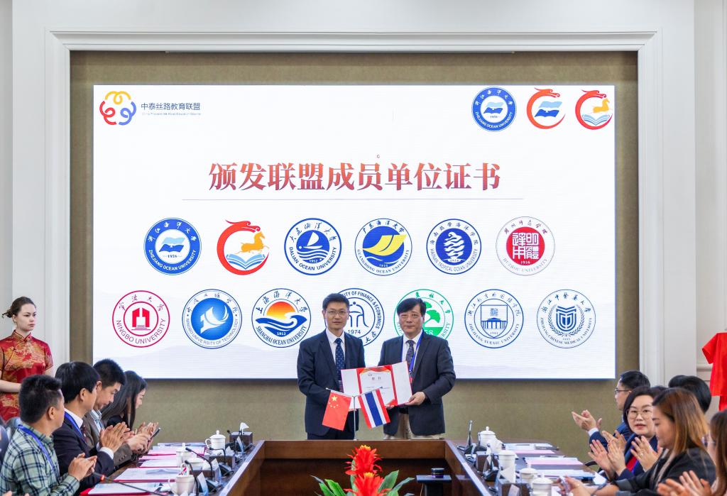 4月22日-23日,由浙江·泰国进步海洋丝路学院、浙江海洋大学和泰国进步学院联合主办的“中泰丝路教育联盟成立仪式暨首届联盟会议”在浙江海洋大学召开。开云官网应邀受聘为首批联盟单位,国际交流合作部部长陈进军率工作人员参加了联盟成立仪式并在首届联盟会议上作报告。