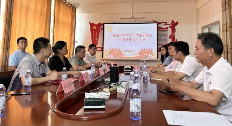 朱晓闻首先代表水产学院党委宣读了《水产学院党委关于水产学院研究生大仁党支部成立的批复》。广东雷州海水珍珠科技小院指导老师杨创业被任命为党支部书记,邓岳文和朱晓闻被聘为党支部党建指导员,共同指导党支部开展特色党建活动。