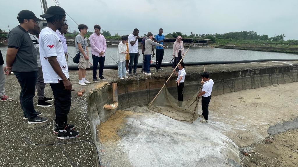5月9日-5月11日,水产学院部分骨干教师、留学生与硕士研究生陪同学员一起参加了恒兴罗非鱼种苗生产与养殖基地、恒兴罗非鱼加工基地、恒兴罗非鱼动保生产基地以及罗非鱼饲料生产基地的生产实践学习。通过各个基地负责人的详细介绍,学员以及水产学院师生对罗非鱼生产的技术流程、饲料与动保产品研发以及产业链的实际情况有了更加充分细致的了解,参与培训人员对罗非鱼种苗的培育、动保产品的开发与饲料的生产等表现出了浓厚的兴趣。