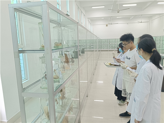 学生在博物馆利用馆藏标本进行比对识别鉴定