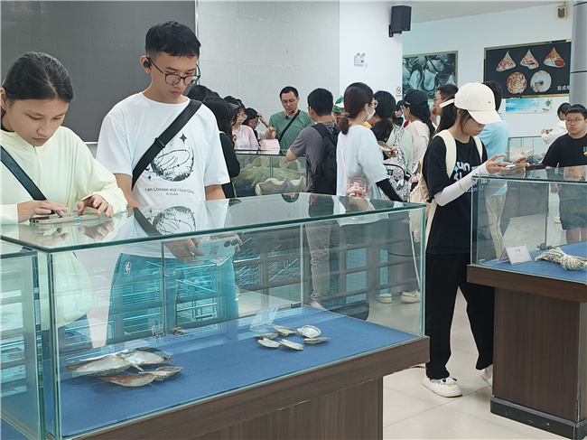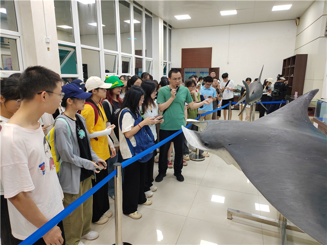 在博物馆讲解员的带领下,师生依次参观了海洋珍稀动物、鱼类、贝类、虾蟹类、藻类及其他生物标本展厅。讲解员向其科普海洋生物的分类、生活习性等各种海洋生物知识、如何保护生物多样性及生物多样性保护的意义,并介绍了水生生物博物馆在救助和保护海洋生物及为保护生物多样性所做的贡献。同学们通过仔细观察标本、认真聆听讲解,深刻了解到海洋生态系统的脆弱性,进一步意识到海洋生物多样性保护的重要性。