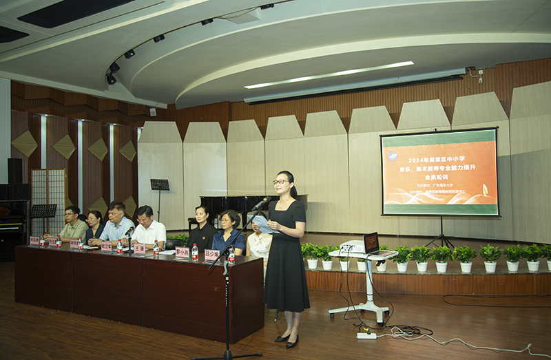5月24日,由学校教务部和麻章区教育局教师发展中心主办、中歌艺术学院承办的麻章区美育教师师资培训开班式在学校舞蹈楼206教室举行。麻章区教育局教师发展中心主任谢明春、培训部主任吕少瑜,中歌艺术学院党委书记欧卫军、院长王珊、副院长罗小燕,教务部副部长乔玉香等以及来自全区各中小学美育教师约120人参加了开班仪式。欧卫军主持开班式。