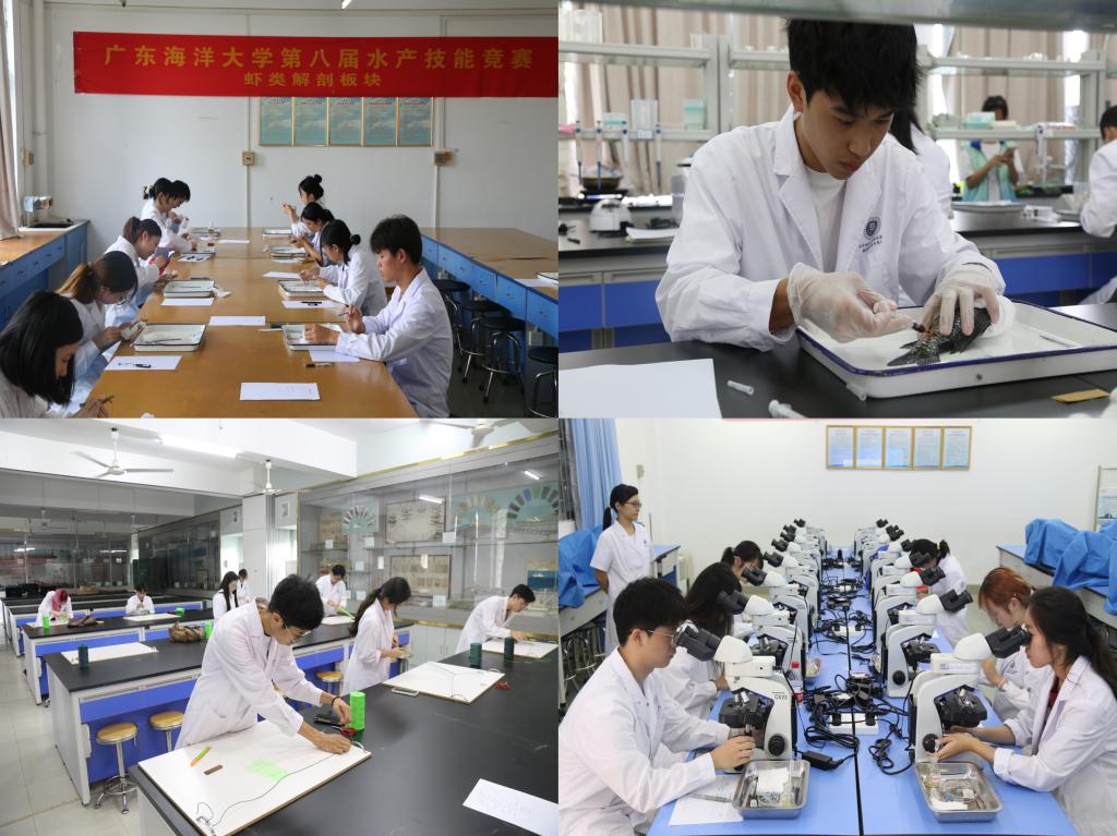 在为期两天的决赛里,决赛选手在鱼类解剖、鱼体病害检查与组织切片、虾类解剖、饲料原料辨别、浮游生物鉴定、渔网的编织以及水质溶解氧的测定、抛网捕鱼等八个比赛项目上展开了激烈角逐。各比赛项目中,选手们精湛的技术、熟练的动手能力、扎实的专业知识,获得了评委老师和领导的高度赞许。