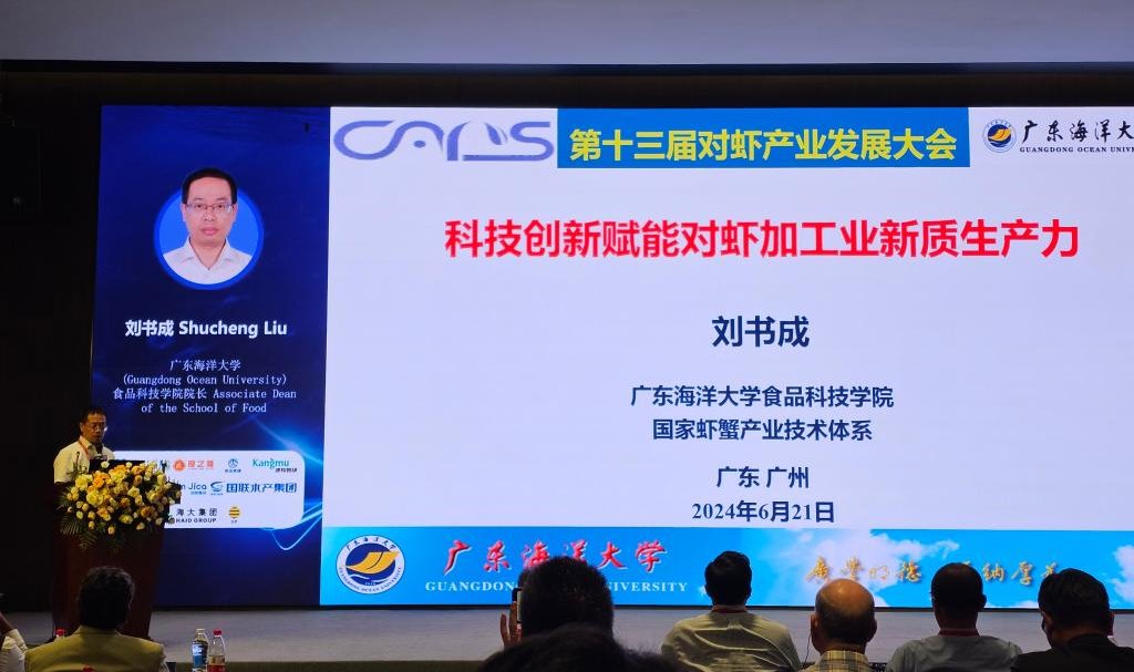 6月19日-21日,食品科技学院刘书成教授和魏帅副教授参加了在广州召开的第十三届对虾产业发展大会。