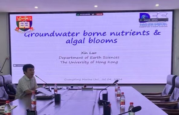 罗新博士为大家科普了赤潮的爆发可能会受到海盐,陆盐和地下水等因素影响,并表示地下水是他的主要研究方向。随后,罗新博士介绍了其团队运用预测模型、遥感技术等方法对香港附近海域的地下水和海水展开的研究,总结了赤潮的爆发与地下水磷盐的含量有关,并且将来可以通过测量地下水的营养盐含量对赤潮灾害进行预警。