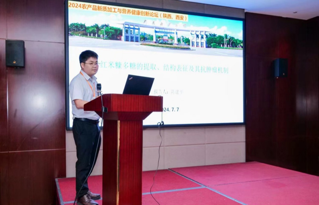 7月5日-7日,食品科技学院陈建平副教授参加了在陕西西安举行的2024年农产品新质加工与营养健康创新论坛,在会上做了题为《海红米糠多糖的提取、结构表征及其抗肿瘤机制》的学术报告。