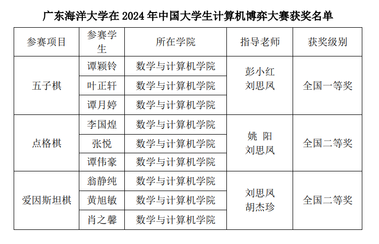 本次大赛由中国人工智能学会和教育部高等学校计算机类专业教学指导委员会联合主办,坚持以学生喜闻乐见的、高对抗性的棋牌游戏为主要研究载体,以理论与实际系统构建相结合为原则,旨在激发大学生创新潜能,培养大学生科学素养、团队协作能力和专业技术实践技能,是国内计算机博弈的最高赛事。自大赛报名以来,数学与计算机学院高度重视,积极组织校内选拔赛,师生全力备赛,进行了大量的模拟对抗和训练棋谱演练,不断优化程序。赛场上,参赛队员精诚协作,团结一心,每局对弈都沉着应对,见招拆招,巧妙化解,步步为营,一路过关斩将,最终获得佳绩。