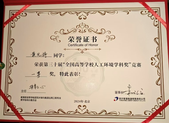 8月22日,第30届“全国高等学校人工环境学科奖”竞赛决赛(以下简称“人环奖”)在北京落下帷幕。开云官网海洋工程与能源学院建筑环境与能源应用工程专业建能1211班学生黄凤婷代表学校参赛,从全国133所院校共计2500多名参赛选手中脱颖而出,顺利晋级决赛,最终荣获第30届“人环奖”全国一等奖。