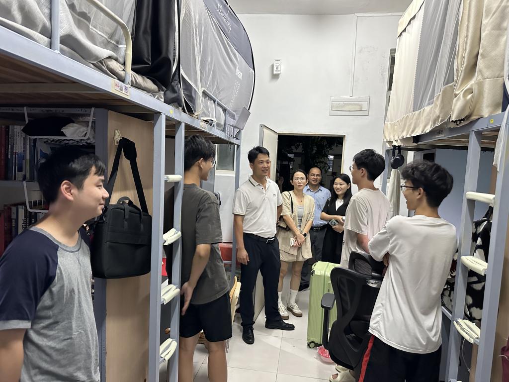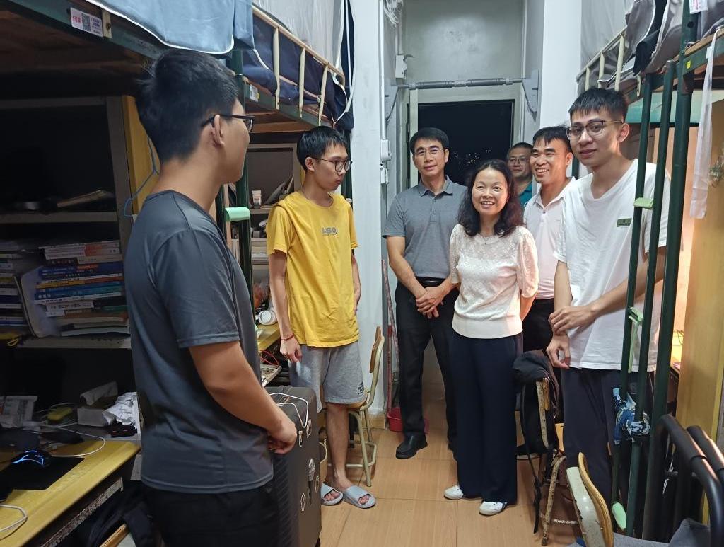 9月1日晚上,学校党委副书记谭平带领学校学工人员走访湖光校区学生宿舍,了解学生返校和生活学习情况,学生工作部、后勤保障部、学院负责人陪同。各学院领导、辅导员和班主任到学院学生所在宿舍区域开展走访和检查。