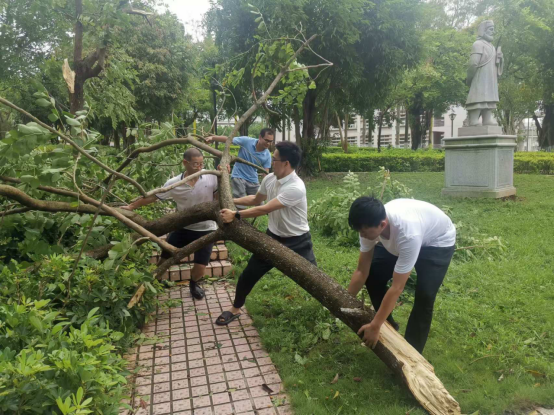 教辅单位党委组织党员干部开展防风和灾后校园清洁工作