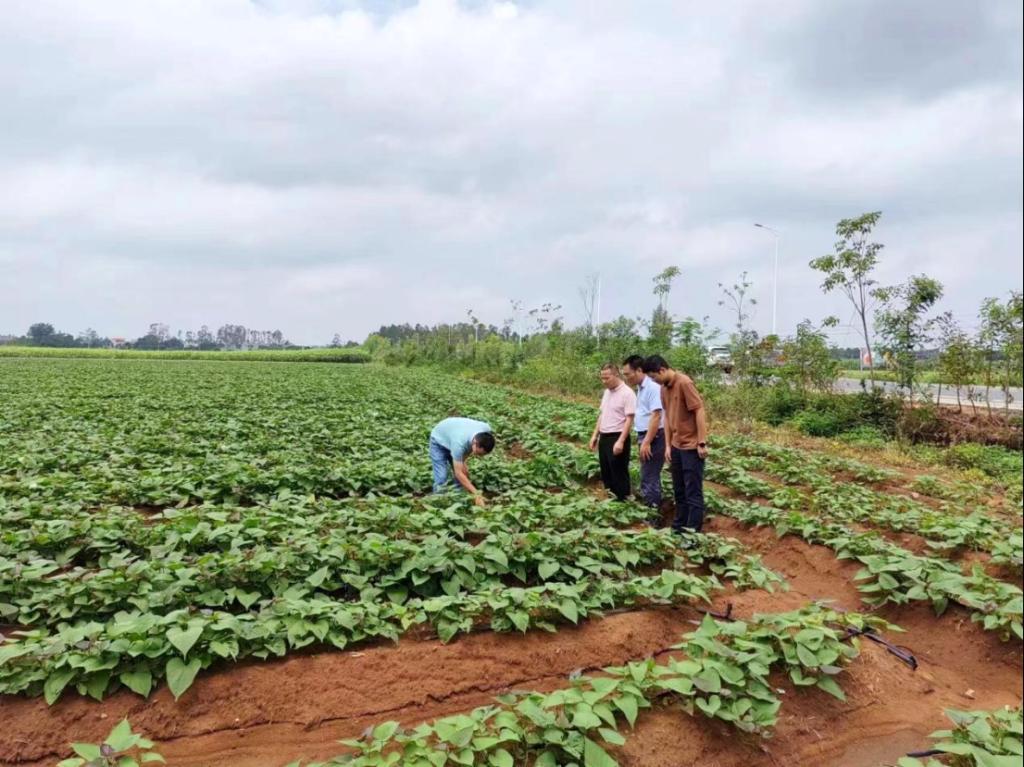 为深入贯彻习近平总书记在党的二十届三中全会上的重要讲话精神和全会精神,落实省委、省政府关于实施“百县千镇万村高质量发展工程”的决策部署,9月25日,食品科技学院“百千万工程”农村科技特派员邓旗副教授、滨海农业学院黄永相副教授和章月琴博士、广东省农科院植保所孙大元副研究员前往遂溪县河头镇调研甘薯产业发展情况。