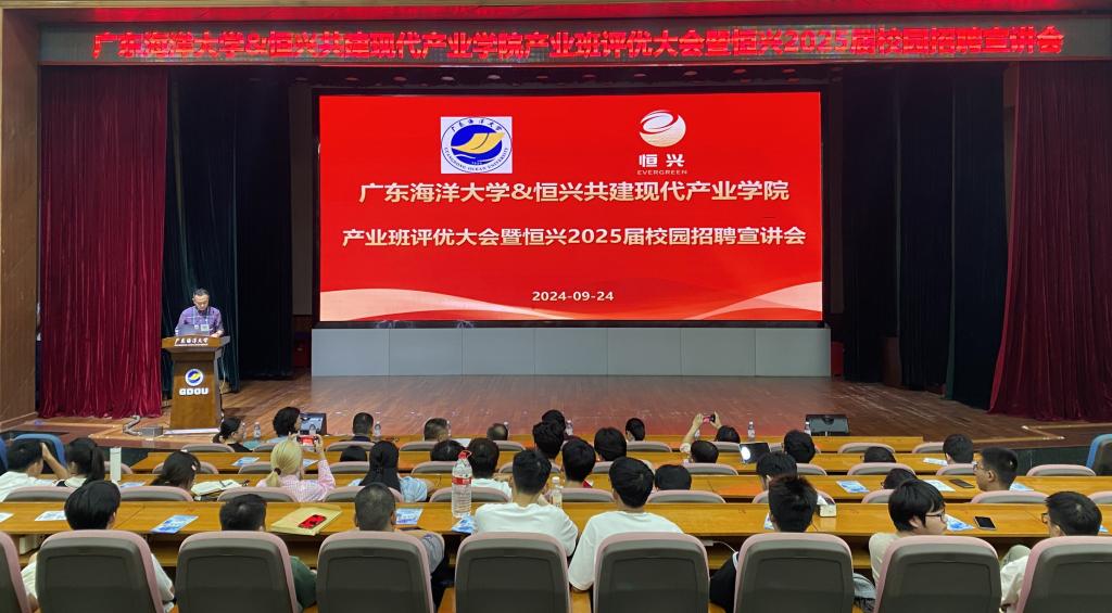 9月24日,开云kaiyun登录入口-广东恒兴集团共建“现代渔业产业学院”首届产业班实习评优大会在主校区多功能厅召开。广东恒兴集团副总裁莫爵君,行政人事中心总经理王友国、副总经理谭彩红,水产学院党委书记王海燕、教务部副部长乔玉香、水产学院副院长杨奇慧、首届产业班班主任汤保贵副教授以及生产实习指导教师代表和水产养殖学专业全体产业班同学100余人参会。会议由水产养殖系主任王忠良主持。