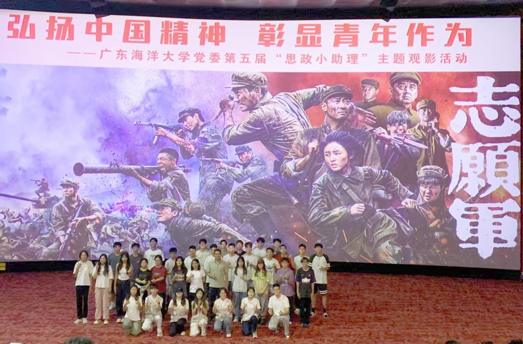 为深化学生爱国主义教育,近日,学校党委第五届“思政小助理”在金沙湾上影国际影城开展了主题为“弘扬中国精神 彰显青春作为”的观影活动,湛江三个校区师生代表共374人参加活动。