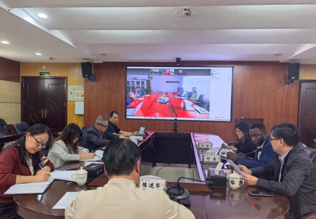 12月4日,中-赞“赞比亚国家级罗非鱼育种生产中心”项目推进会以“线上+线下”的方式在湖光校区行政楼4楼会议室举行。赞比亚卡帕萨马卡萨大学(KMU)校长Jacob Mwitwa教授及专家教师代表8人在线上参会;广东恒兴集团有限公司(Guangdong Evergreen Group)副总裁王建红、高级工程师杨忠樱,开云官网水产学院副院长陈华谱教授、外籍教师Dr.Amoah Kwaku、国际交流合作部副部长邓筑虹及相关工作人员参加了线下会议。会议由国际交流合作部部长陈进军主持。
