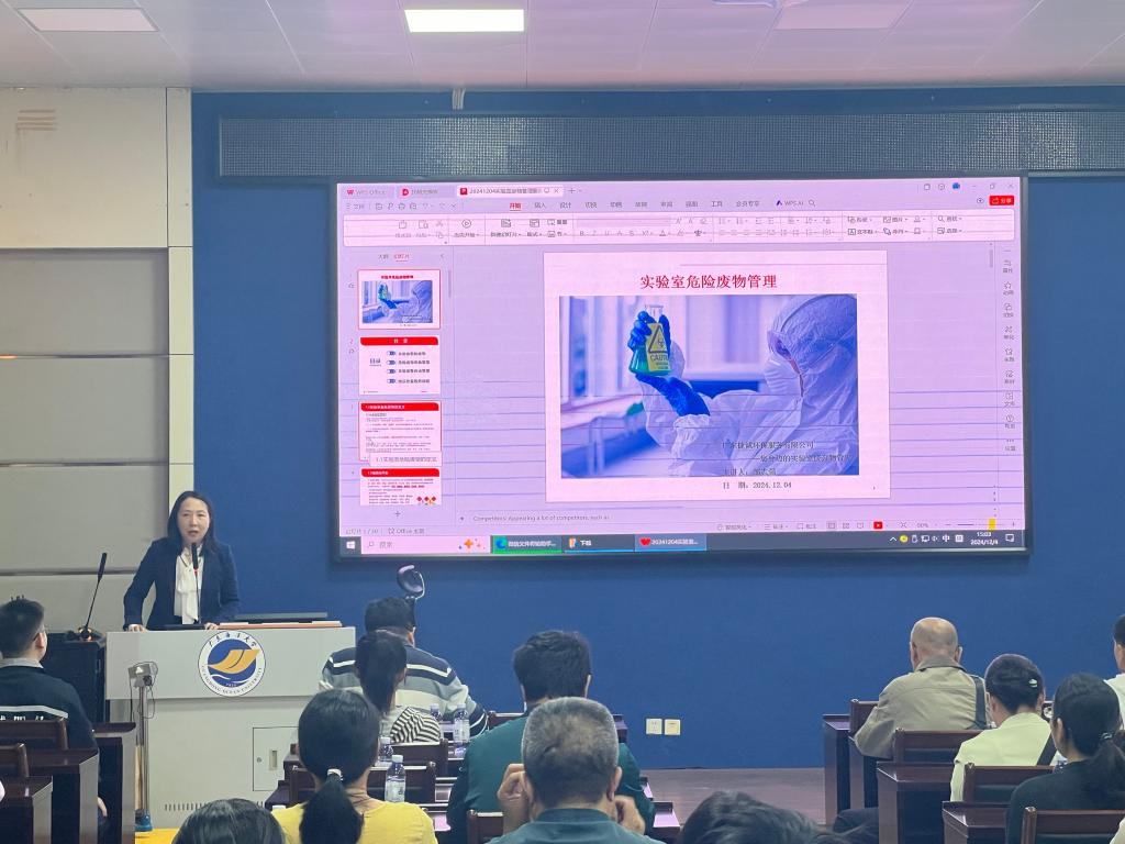 12月4日下午,学校资产设备管理部在水生生物博物馆会议开展全校实验室废弃物处置培训会,资产设备管理部负责人,产废学院(中心)实验教学中心负责人、安全员,科研实验室负责人、项目主持人、负责实验室废弃物工作的老师、研究生等70余人参加了培训会。