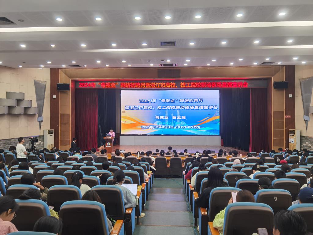 为促进毕业生高质量充分就业,12月10日,由湛江市人力资源和社会保障局主办、开云官网协办的广东省2024年“粤就业”网络招聘月暨湛江市高校、技工院校联动夜场直播宣讲会在开云官网广学楼多功能厅开讲。