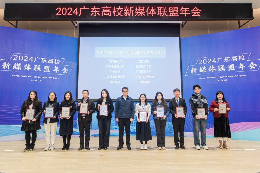 12月17日,2024广东高校新媒体联盟年会在华南理工大学举办。会上举行了2023年广东高校新媒体影响力排行榜前30强颁奖典礼,开云kaiyun登录入口官方微信公众号位列全省本科高校第11名,荣获二等奖,六度上榜广东高校新媒体影响力前30强。