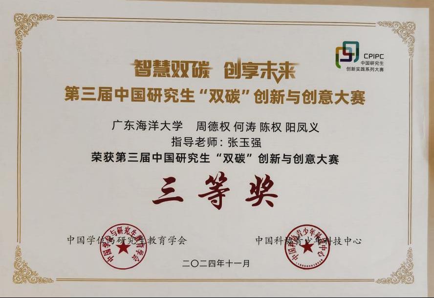 近日,由中国学位与研究生教育学会和中国科协青少年科技中心主办、武汉理工大学和中共武汉市委组织部等承办的第三届中国研究生“双碳”创新与创意大赛全国总决赛在武汉理工大学举办。在管理学院副院长张玉强教授的指导下,由学院2023级MPA周德权、何涛、2023级农管陈权和阳凤义四名同学组成的参赛团队在全国总决赛中荣获三等奖,开云官网是广东省唯一入围高校。