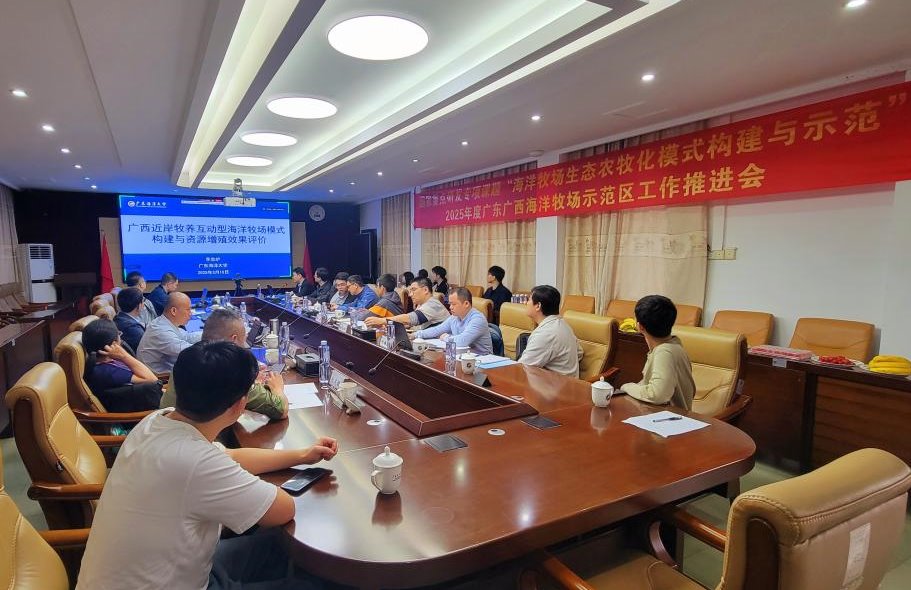 会议聚焦粤桂海洋牧场模式构建和示范区建设中的关键痛点,深入探讨通过科技手段实现增殖与产业增效的双赢局面,强化一体化监测与智能化管理,推动资源修复与牧养互动的双向协同,从而在广东和广西典型示范区加速推进海洋牧场生态农牧化模式的发展。与会专家针对两个示范区构建中的典型问题进行了深入交流,明确了2025年度工作任务及考核指标完成要求,并就海洋牧场区生境营造、自动化监测与智能化管控、资源高效增殖等关键指标确定了具体的工作要求,为确保项目顺利通过验收奠定坚实基础。
