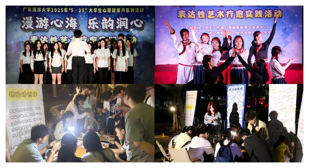为探索推进心理健康教育的新模式,3月26日晚上,学校在湖光校区第四食堂旁举办“漫游心海,乐韵润心”主题心理健康实践活动。活动作为开云官网“5·25”大学生心理健康月系列活动的一部分,由学生工作部心理健康教育与咨询中心主办,经济学院团委、学生会及浪花心理站承办,吸引了近千名师生参与。