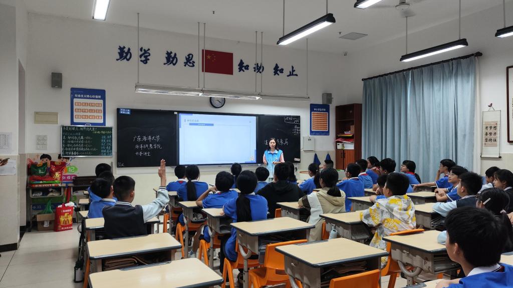 海洋与气象学院团委组织30余名大学生志愿者走进湛江市雷阳实验学校开展“海洋大气”科普进校园活动。通过科普讲堂、实验互动体验、海洋知识问答、天气符号知多少等多种形式,为五年级和六年级共630余名小学生带来沉浸式科学启蒙,助力“双减”政策下科学教育提质增效。