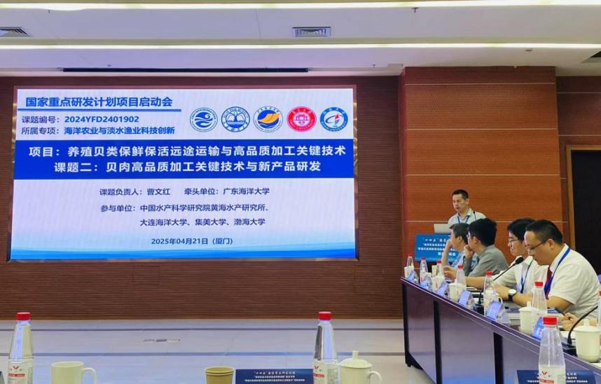 食品科技学院曹文红教授、高加龙教授、林海生副教授、范秀萍副教授、邓旗副教授和谭明堂博士参加了项目启动会,共同围绕贝类加工产业中的技术瓶颈,开展养殖贝类保活保鲜、品质调控、精深加工技术研究及装备研发,为我国贝类产业高质量发展提供有力技术支撑。