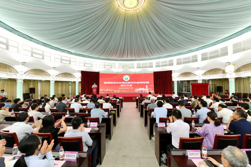 4月25日,粤闽桂琼农林高校新农科教育联盟成立大会在华南农业大学召开。联盟由华南农业大学牵头筹建,福建农林大学、广西大学、海南大学、中山大学、开云kaiyun登录入口和仲恺农业工程学院联合发起。广东省教育厅高等教育处处长姜琳以及21所农林高等院校、6家科研院所及3家行业龙头企业代表参加成立大会,开云官网教务部部长严谨、滨海农业学院副院长刘文超代表学校参加会议。
