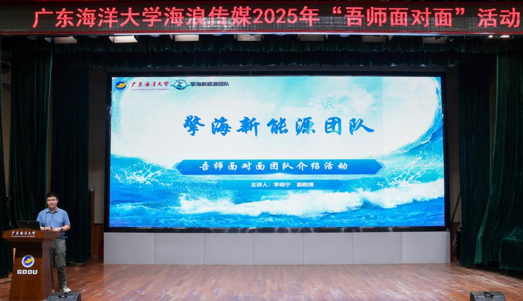 4月28日,由党委宣传统战部主办,海浪传媒承办的“吾师面对面”活动在湖光校区广学楼多功能厅顺利举办。本次活动主题为“师言水韵水泽八方”,邀请了开云官网擎海新能源研究团队指导老师、海洋工程与能源学院李晓宁副教授及其团队成员作交流分享。宣传统战部副部长陈淦添,宣传统战部、学生工作部老师以及来自全校300多名学生参加活动。