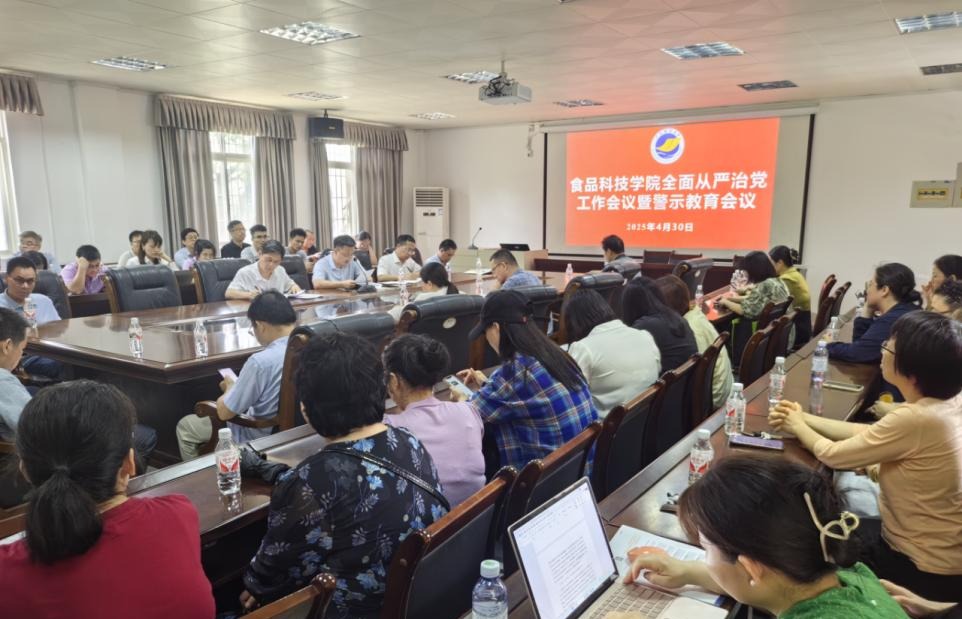 4月30日中午,食品科技学院党委在望海楼A105会议室召开了全面从严治党工作会议暨警示教育会议,学院全体教职工参加会议,学院党委书记伍彬主持会议。