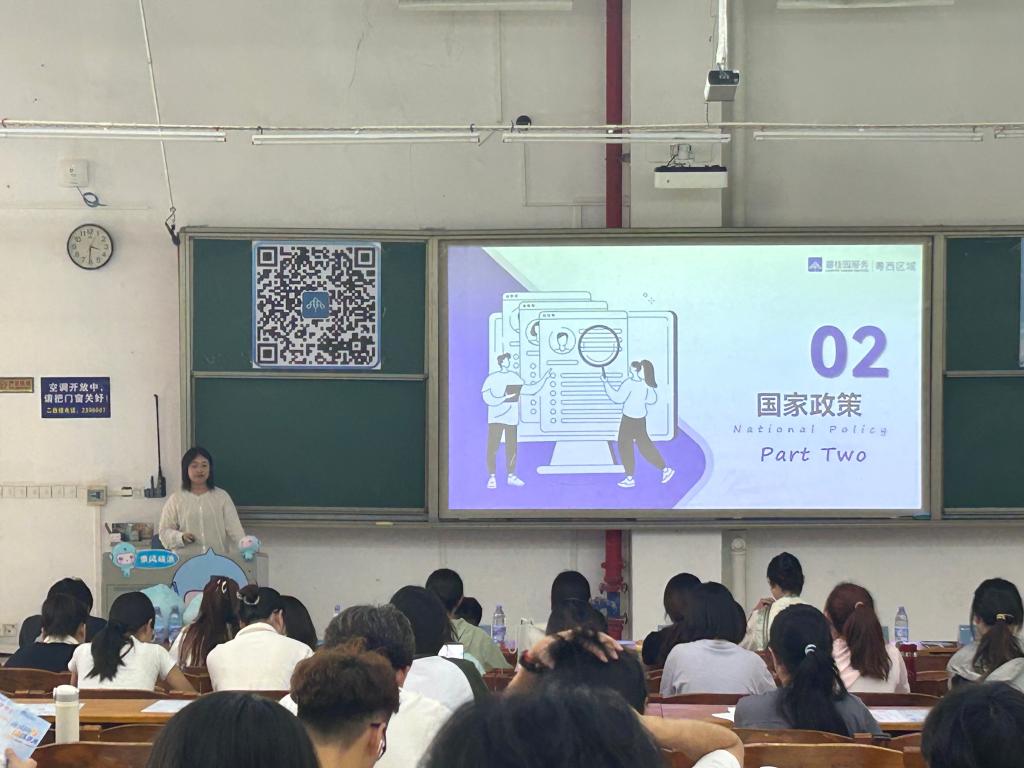 曾艳芳要求同学们树立正确就业观,尽早做好职业生涯规划,持续提升综合素质,争做新时代优秀管理人才。严洁结合自身求职经历和职场体验,为大家分析了数字化时代下的职业能力要求和发展路径,从就业准备、国家政策、职业规划、简历制作、求职技巧等五个方面对同学们进行详细指导,并重点就职业生涯规划、实践创新能力提升等问题提出对策建议。讲座结束后,碧桂园生活服务集团开展2026届校园招聘现场宣讲,为学生介绍企业情况和招聘需求。