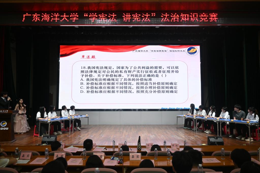 为深入普及宪法知识,增强学生法治观念,5月17日,学校党政办公室和法政学院在湖光校区广学楼多功能厅联合举办了第十届“学宪法,讲宪法”法治素养竞赛,学校党政办公室副主任彭卫朋、法政学院教授杜承秀等200多名师生参加活动。