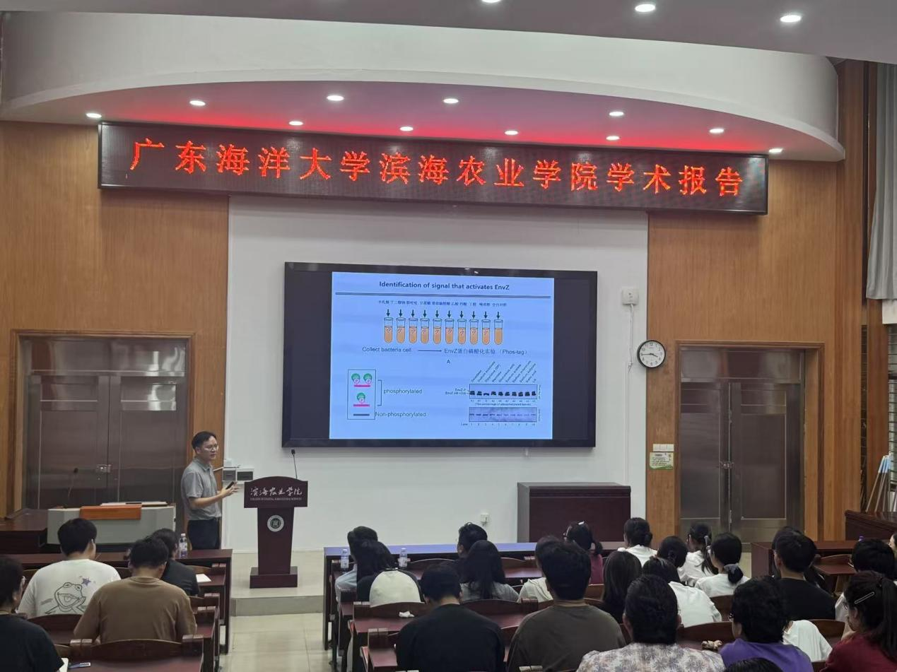 5月21日,南方科技大学长聘教授周晓辉应邀在湖光校区兴农楼109室作了题为《从信号到响应:双组分系统在细菌化学通讯中的枢纽作用》的学术报告。报告会由滨海农业学院院长马驿教授主持,学院教师、研究生及本科生等100余人参会。