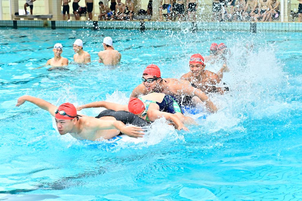 5月24日下午,由马克思主义学院和体育与休闲学院联合主办,“学迈对分课堂工作室”承办的“水上趣味运动会”在游泳池举行。来自两个学院的师生共200余人参加了运动会。马克思主义学院党委副书记林海峰在运动会开幕式上鼓励队员们“聚智汇力,团结协作”完成比赛,体育与休闲学院党委副书记谭斌在运动会结束时宣布比赛成绩,并为获奖队伍颁奖。