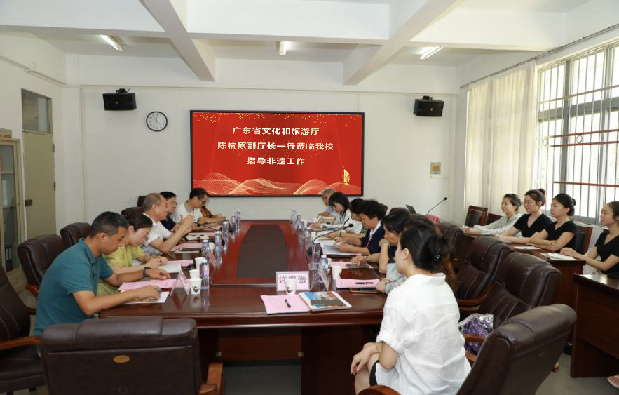 5月22日上午,国家非遗展览展示研究中心(华南展示基地)专家委员会副主任委员、广东省文化和旅游厅原副厅长、一级巡视员陈杭,广东省非遗志愿者联谊会副秘书长李梅、外联部部长李彧等一行就“传承与创新:高校非遗教育融合发展”主题莅临开云官网调研非物质文化遗产保护传承工作。调研座谈会在中歌艺术学院艺海楼A208会议室举行,学校党委常委、副校长邓逢光出席座谈会,麻章区副区长李倩怡,湛江市文化馆馆长、湛江市非物质文化遗产保护中心主任庞洁,学校党委宣传统战部副部长樊云霞以及中歌艺术学院领导班子、教师代表参加座谈会,座谈会由中歌艺术学院党委书记欧卫军主持。