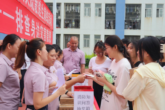 演练结束后,在疏散集合点进行了演练点评与总结。活动现场首次增设了消防知识有奖问答环节,寓教于乐,让师生们在轻松愉快的氛围中学习消防知识,取得了良好效果。