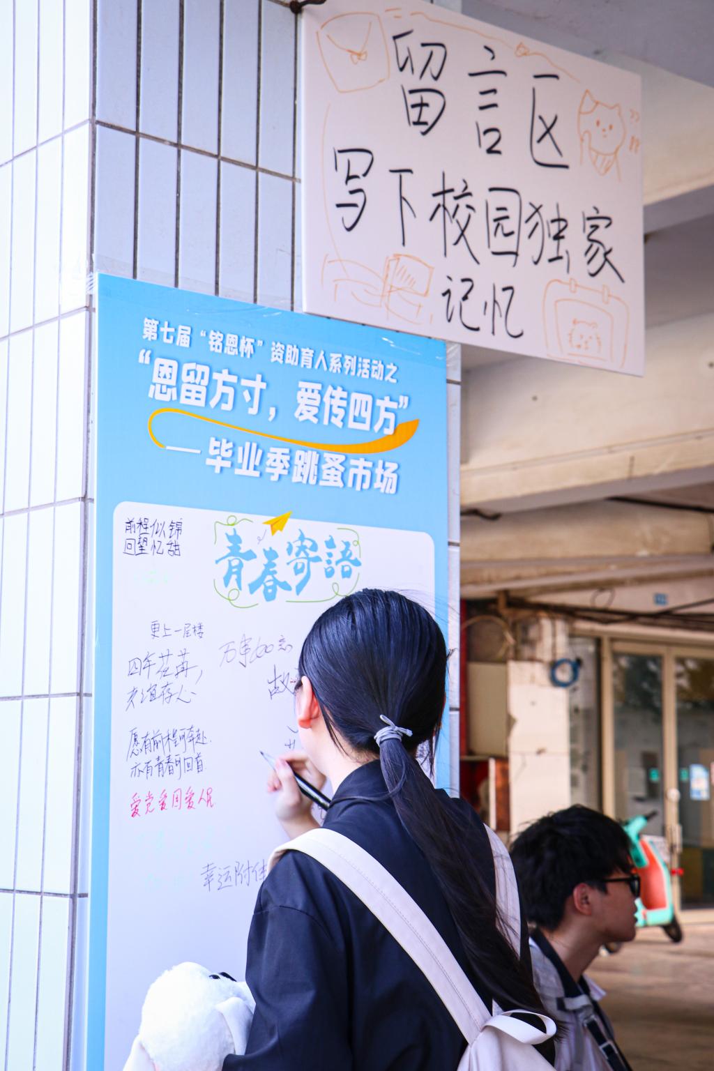 跳蚤市场的内容设计丰富多元,机器狗、机器人表演和3D打印技术展演,不仅展示了学校的创新活力,更激发了参与学子的求知欲;融入校史元素的小游戏,则巧妙勾起了准毕业生们对校园生活的眷恋,深化了爱校情怀。每一件流转的物品,每一份真挚的寄语,都承载着学子们的情感与期许,成为一堂生动的实践育人课。