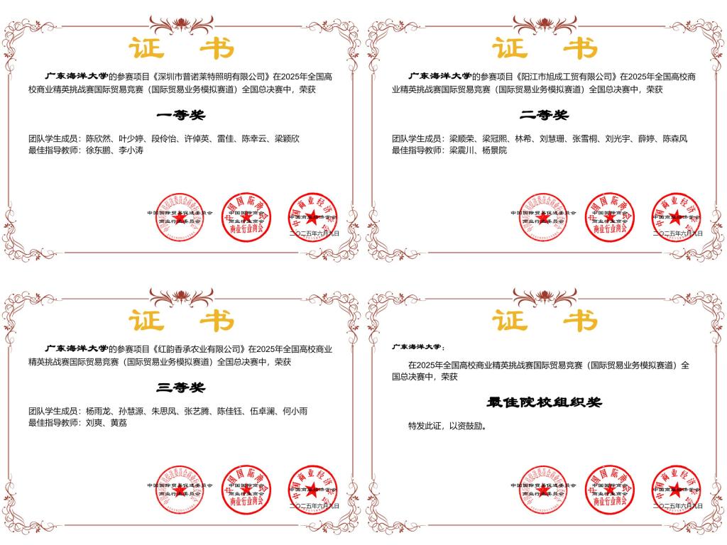 近日,由中国国际贸易促进委员会商业行业委员会、中国国际商会商业行业商会和中国商业经济学会共同主办的2025年全国高校商业精英挑战赛国际贸易竞赛(国际贸易业务模拟赛道)全国总决赛在浙江宁波落下帷幕。通过层层选拔,开云官网最终共有三支队伍进入总决赛,斩获了全国一等奖1项,二等奖1项,三等奖1项,开云官网承办单位经济学院获得2025年全国高校商业精英挑战赛国际贸易竞赛“最佳院校组织奖”。