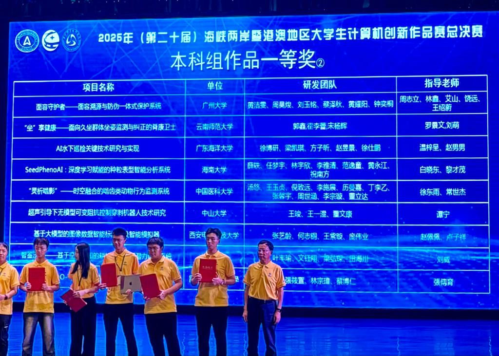 7月16日,第二十届海峡两岸暨港澳地区大学生计算机创新作品赛总决赛在四川乐山职业技术学院举办。经过交流展示与终评答辩环节,大赛最终评选出了本科组一等奖19项、二等奖38项、三等奖56项,计算机科学与工程学院徐博研团队的《AI水下巡检关键技术研究与实现》项目,在激烈竞争中脱颖而出,荣获全国总决赛一等奖。