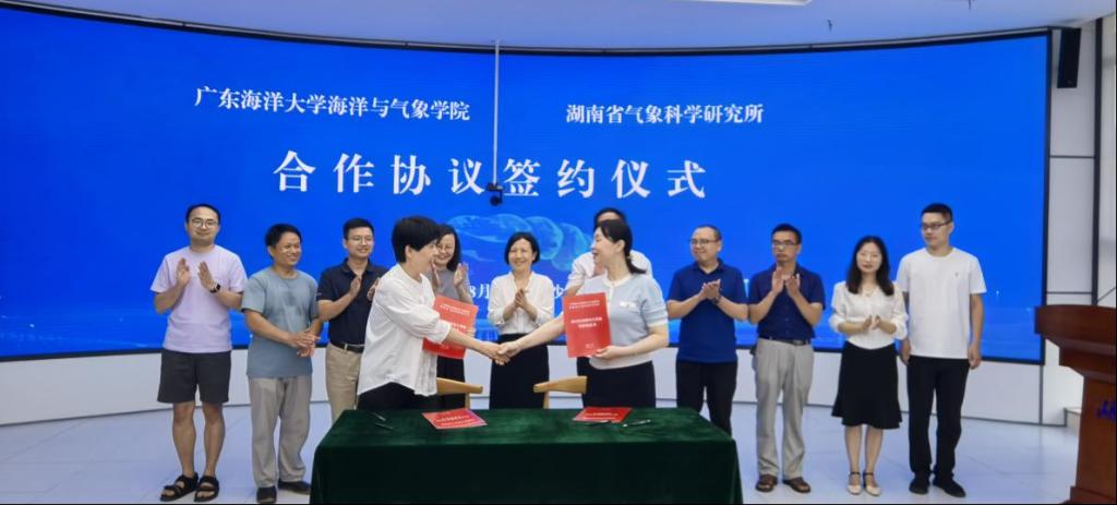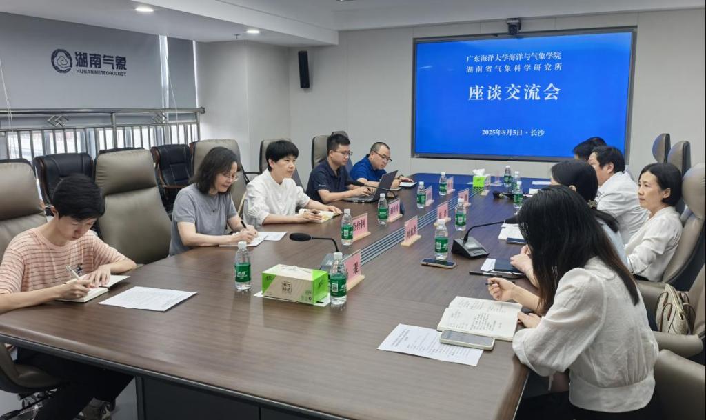 8月5日,海洋与气象学院院长谢玲玲教授一行4人拜访湖南省气象科学研究所(以下简称省气科所),与省气科所所长叶成志、人事处处长彭洁等领导专家就深化所校合作、人才培养、科学研究等事宜进行深入交流,并签署了所校研究生联合培养基地协议。