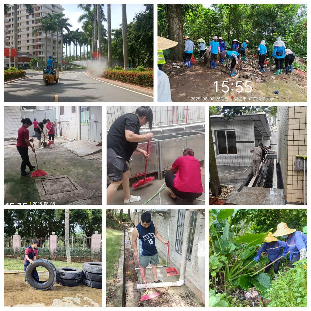 8月8日,后勤保障部积极响应全市爱国卫生运动统一行动号召,后勤各中心、科室组织人员在湖光校区、海滨校区、霞山校区开展全面清理工作。大家齐心协力,清理垃圾、积水,同时对校园进行蚊虫消杀,有效降低了蚊虫密度,从源头上切断了疾病传播途径。