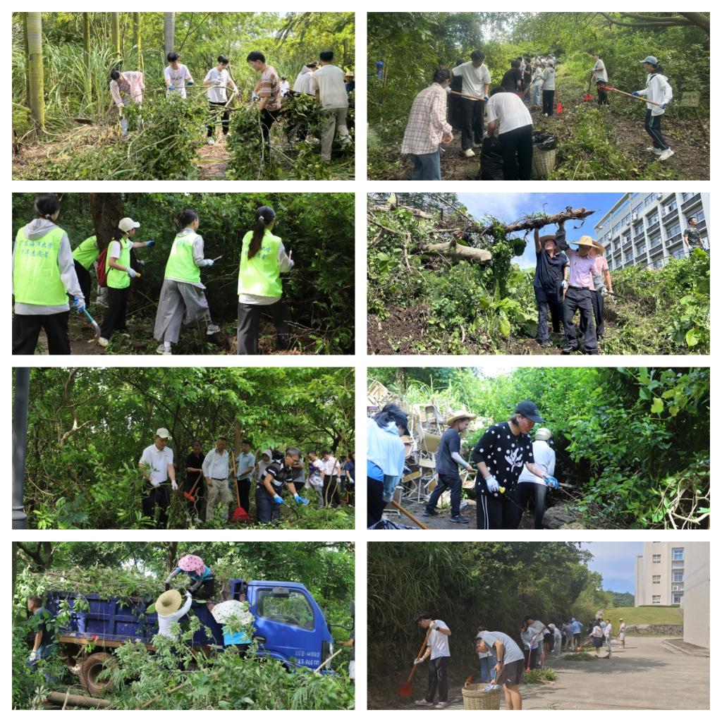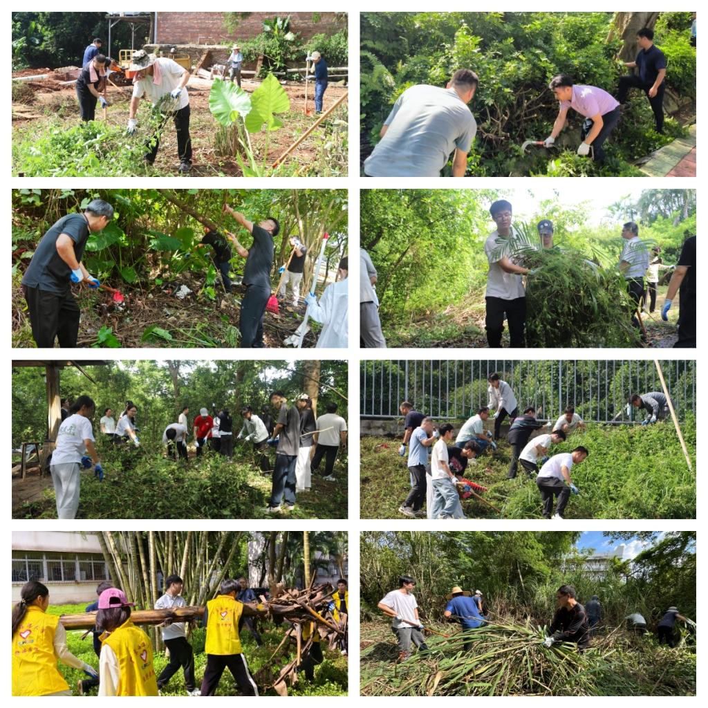 在清洁过程中,各二级党组织严格按照工作指引和任务要求,在东山公园、北岭公园及杏坛食苑西侧荒地等区域进行深入细致的清理,对包干区进行卫生整治。校园随处可见师生辛勤劳动的身影,大家手执清洁工具,清理杂树、杂草、攀藤植物、碎石、干枯枝叶、生活垃圾等,美化校园环境,消除蚊虫孳生地,有效预防基孔肯雅热等蚊媒传染病。