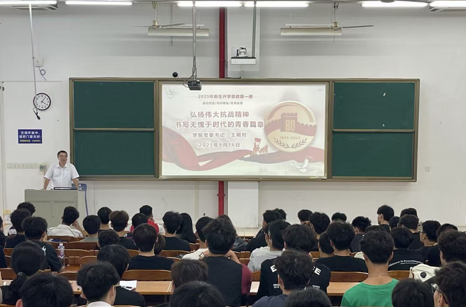 9月16日,体育与休闲学院党委书记王明对以《弘扬伟大抗战精神,书写无愧于时代的青春篇章》为题,为2025级新生讲授了一堂深刻而富有意义的“思政课第一课”。