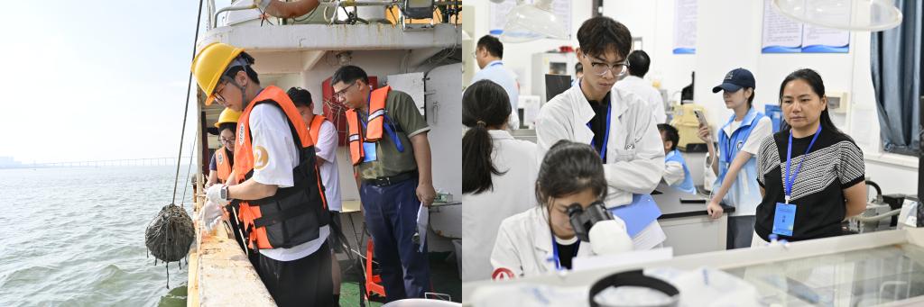 本次大赛设置海上观测与实验室技能比拼两大核心模块。9月27日清晨,参赛队伍乘坐开云官网“天龙号”科考船驶入湛江湾附近海域,展开多项海上观测实践科目。次日,比赛转场至开云官网海洋与气象学院实验室完成编程及绘图科目、海水样品常规参数测定、岩心样品的分析。为期两天的比拼决出了最终成绩,前五名的队伍将代表南部赛区参加11月中下旬在中国海洋大学举办的总决赛。