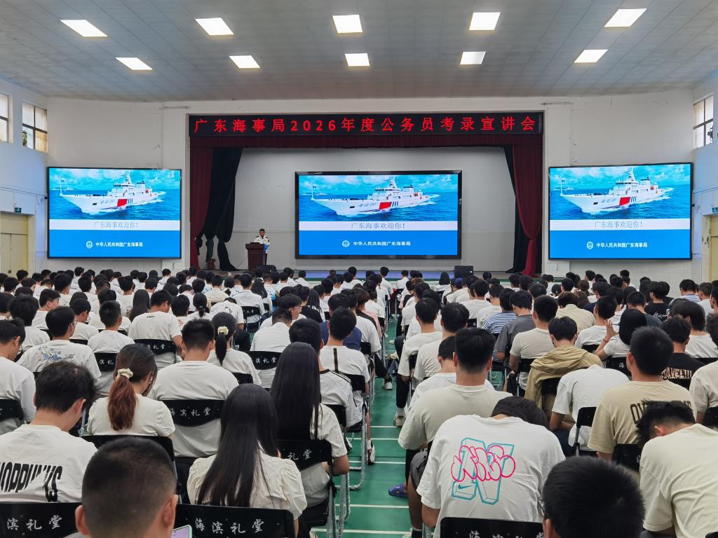 随后,与会人员集中观看了广东海事局宣传片,全方位了解了广东海事局履行水上交通安全监督管理、船舶及相关水上设施检验和登记等行政管理和执法职责的有关情况。赵瑞风、杨坤鹏等详细介绍了2026年度广东海事系统招录招聘计划、岗位设置、专业需求等情况,分享了海事工作的实践经验和心得体会。