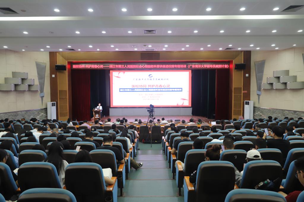 10月17日,湛江市第三人民医院来校开展“医校协同 共护青春心灵——湛江市第三人民医院社会心理服务科普讲座进校园”心理专题培训。培训邀请了广东省人民医院(广东省精神卫生中心)主任医师、医学博士、博士生导师贾福军教授,广东省第一荣军优抚医院心理科主任郭馨文副主任医师,佛山市第三人民医院质管部主任俞洋主任医师三位专家主讲。学校党委副书记谭平、湛江市第三人民医院党委书记吴志和广东省人民医院(广东省精神卫生中心)主任医师贾福军分别在开班仪式上致辞发言。学生工作部、阳江校区学生事务部负责人,心理健康教育与咨询中心全体教师,各学院分管学生工作领导、全体辅导员、班级心理委员代表共300余人参加现场会议,阳江校区心理健康教育与咨询中心教师与辅导员通过线上直播参会。会议由学生工作部部长郑一鸣主持。
