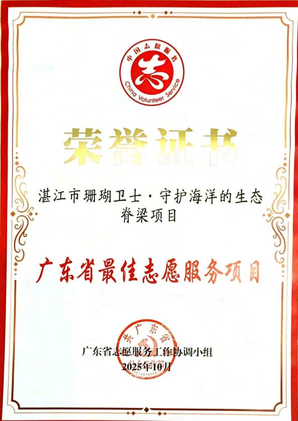 本次活动由中共广东省委社会工作部主办、南方都市报社承办,对涵盖绿美生态、助残服务、乡村振兴等领域的160个志愿服务先进典型予以嘉许。“珊瑚卫士”项目凭借16年的坚守与创新,成为高校志愿服务助力生态保护的典范。