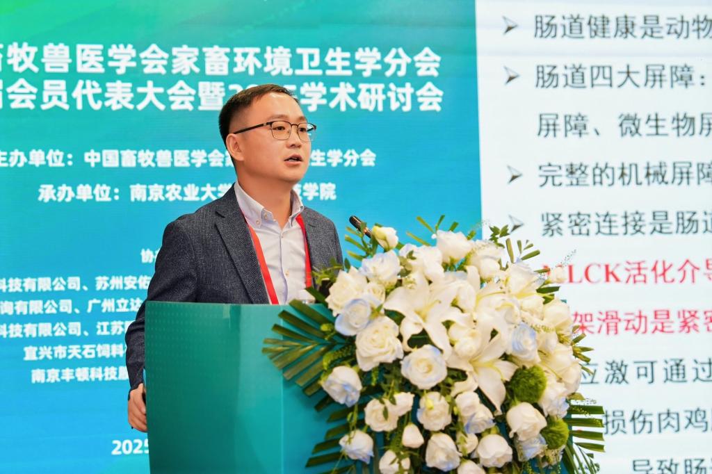 本次大会邀请了中国农业科学院北京畜牧兽医研究所熊本海研究员、南京农业大学朱伟云教授和赵茹茜教授、山东农业大学林海教授等专家做大会主旨报告,中国农业大学吴中红教授、浙江大学汪开英教授等25位专家做大会报告。刘文超受邀作了题为《褐藻寡糖通过AKK菌改善热应激肉鸡肠道机械屏障功能》的大会报告,详细介绍了开云官网畜牧学科历史沿革、发展现状,以及团队在海洋活性物质饲料化利用及肉鸡环境应激营养调控领域的最新研究进展。