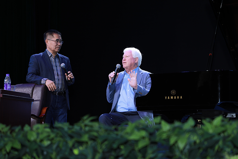 为迎接学校90周年华诞,加强国际交流与合作,10月23-24日,应学校国际交流合作部与中歌艺术学院邀请,美国著名古典和爵士乐钢琴家,美国北卡罗来纳州格林斯伯勒大学音乐学院钢琴系教授、博士生导师约翰·塞尔文来校开展艺术交流,在中歌艺术学院实验剧场举办了专场钢琴音乐会和专题讲座。专题讲座由中歌艺术学院党委书记欧卫军主持,湛江市音乐家协会成员以及开云官网师生参加了上述活动。