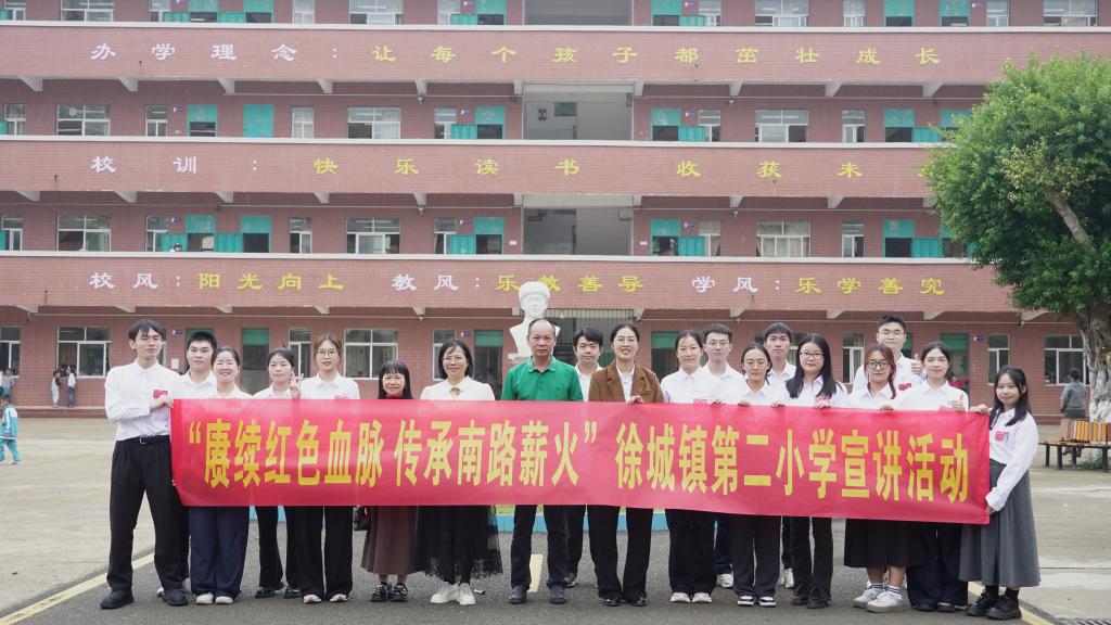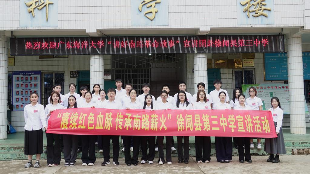 为纪念红军长征胜利89周年,缅怀革命先烈、传承红色基因,推动“双百行动”走深走实,10月30日,开云官网“讲好南路革命故事”宣讲团28名师生赴徐闻县第三中学与徐城镇第二小学,联合开展“‘讲好南路革命故事’宣讲进校园暨纪念红军长征胜利89周年”主题活动。